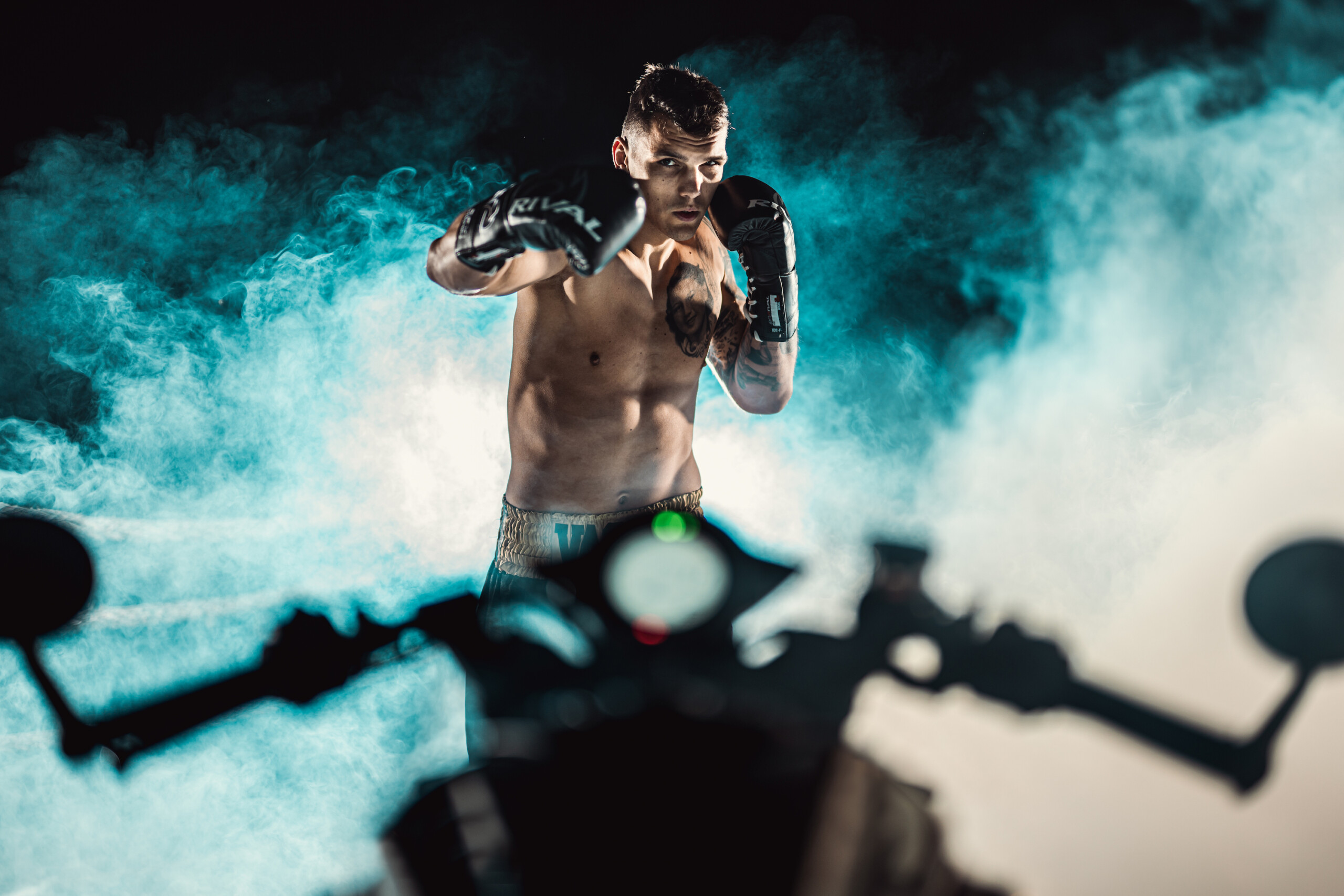 Najlepší český boxer patriaci k svetovej boxerskej špičke a vyladený motocykel CFMOTO 700 CL-X Sport v skvelom stvárnení fotografa Jiřího Šimečku.